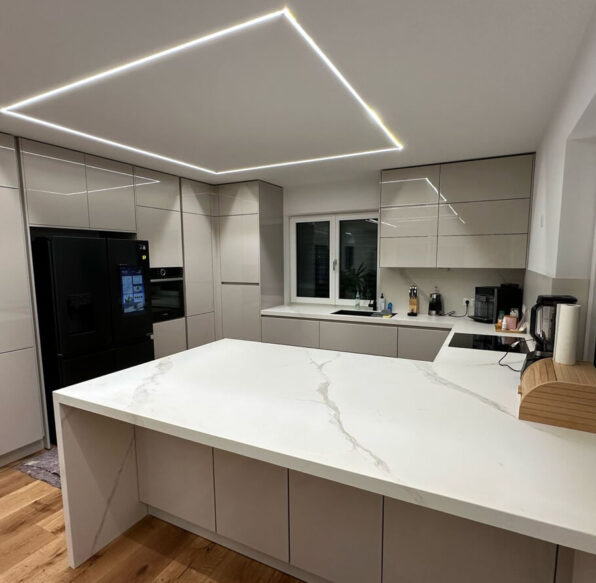Hier sehen Sie eine Auswahl an Küchenprojekten, die wir individuell geplant und umgesetzt haben. Jede Arbeitsplatte wurde maßgeschneidert, millimetergenau zugeschnitten und mit speziellen Ausschnitten – etwa für Spülen, Kochfelder – gefertigt. So entstehen einzigartige Küchenlösungen, die nicht nur optisch begeistern, sondern auch im Alltag höchste Funktionalität bieten. Lassen Sie sich inspirieren und entdecken Sie, wie Keramik-Arbeitsplatten nach Maß Ihre Küche aufwerten können.